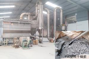 1,對于PVC產品含的自由水。產品很容易干燥。只需要選用QG型氣流干燥即可。但產品很水分特別高,約為10%,在于燥過程中很容易出現結塊現象。因此要求在氣流于燥底部加有高速粉碎分散裝置。將結塊的PVC在干燥過程中破損成粉狀。實現一邊干燥一邊粉碎。同時由于氣流干燥是瞬間干燥設備,適合熱敏性物料干燥。在這個干燥過程即使采用較高的溫度(100-200度)進行于燥,產品溫度的也不會很高。一般為100度。產品干燥后的水分控制在8-10%。