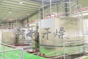 ??1、 塔徑塔高做了相應的調整,既保證物料干燥之前接觸不到塔壁,又保證物料在熱風中的停留時間;塔壁設有夾套冷風冷卻裝置,確保物料吸附在塔壁上因局部溫度過高而產生軟化、熔融甚至焦化現象;錐角增大,錐體上安裝空氣震擊器,用壓縮空氣脈沖式地震擊筒體,把吸附在筒體上的粉料順暢地擊落下來;