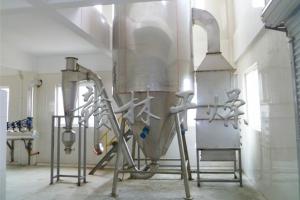 筒體內(nèi)形成螺旋向下的風(fēng)向和霧狀料液充分接觸,從而實(shí)現(xiàn)將料液干燥,干燥后的料液成固體粉狀產(chǎn)品混合在廢熱空氣內(nèi),被