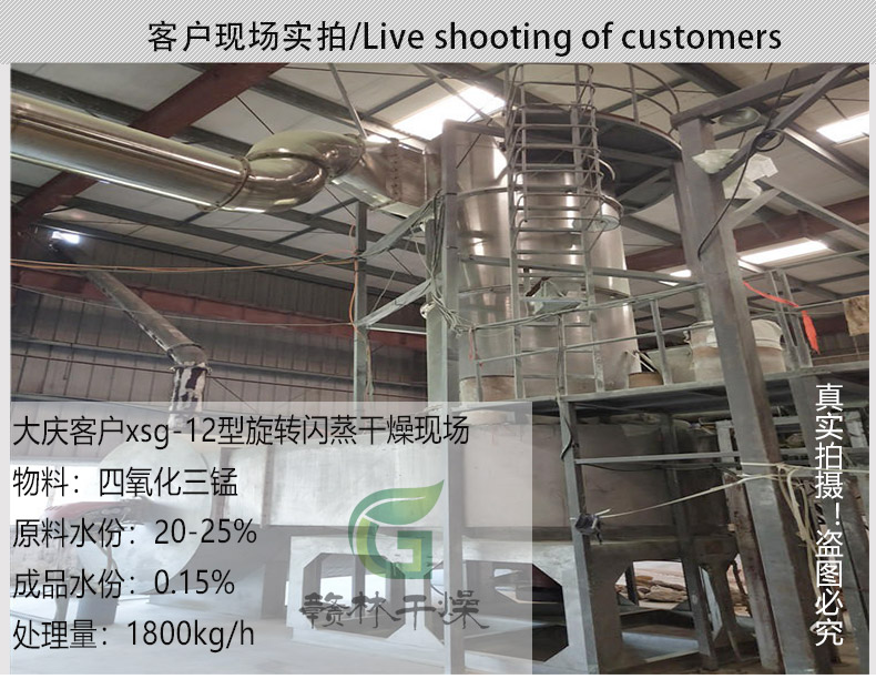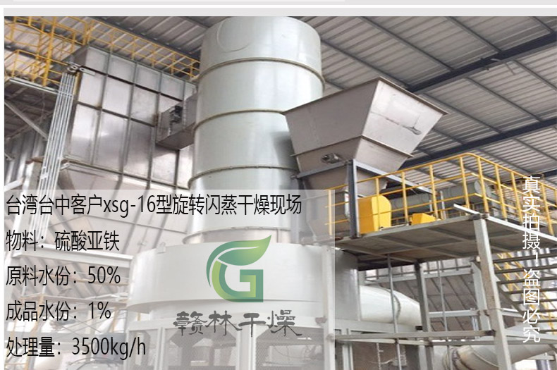 產品簡介:XSG 系列旋轉閃蒸干燥機是我廠在引進、吸收國外先進技術的基礎上,自行開發成功的新型干燥設備,該機技術先進,設計合理,結構緊湊,適用范圍廣,生產能力大,產品質量好,效率高,節能,在一個設備內干燥、粉碎、篩分一次完成,消除環境污染